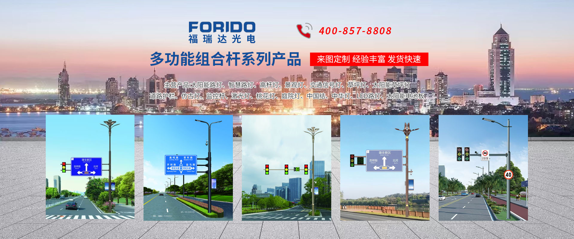 揚(yáng)州福瑞達(dá)光電科技有限公司位于淮左名都?xì)v史文化名城、中國路燈制造基地?fù)P州市北郊菱塘工業(yè)園,公司占地面積76000平方米,注冊資金10518萬元,擁有高級技術(shù)嫻熟的員工280多人,擁有大型折彎機(jī)、激光切割、數(shù)控注塑機(jī)、壓鑄機(jī)、自動(dòng)埋弧焊、氣焊、彩色粉末靜電噴塑等大型自動(dòng)化設(shè)備,我公司是一家集設(shè)計(jì)、研發(fā)、生產(chǎn)、銷售、施工安裝服務(wù)為一體的戶外交通照明產(chǎn)品制造商,主要生產(chǎn)智慧路燈、太陽能路燈、LED路燈、高桿燈、景觀燈、交通信號燈、交通標(biāo)志牌、通信鐵塔、路跨鋼結(jié)構(gòu)、公交站臺、太陽能光伏組件、景點(diǎn)亮化、樓宇亮化工程的設(shè)計(jì)施工等。公司秉承開拓創(chuàng)新、銳意進(jìn)取、精誠服務(wù)的企業(yè)精神,堅(jiān)持以“誠信為本、技術(shù)為先、服務(wù)是金”的合作理念,我們憑借先進(jìn)的制造工藝、優(yōu)質(zhì)的產(chǎn)品質(zhì)量、合理的市場價(jià)格和完善的售后服務(wù)贏得了廣闊的市場和客戶的信賴?! ∥夜疽淹ㄟ^ISO9001質(zhì)量體系認(rèn)證、ISO14001環(huán)境管理體認(rèn)證,CQC產(chǎn)品認(rèn)證,中國節(jié)能產(chǎn)品認(rèn)證,通過“CCC”強(qiáng)制性產(chǎn)品認(rèn)證,具有市政總承包,照明,交安,設(shè)計(jì)等資質(zhì)···